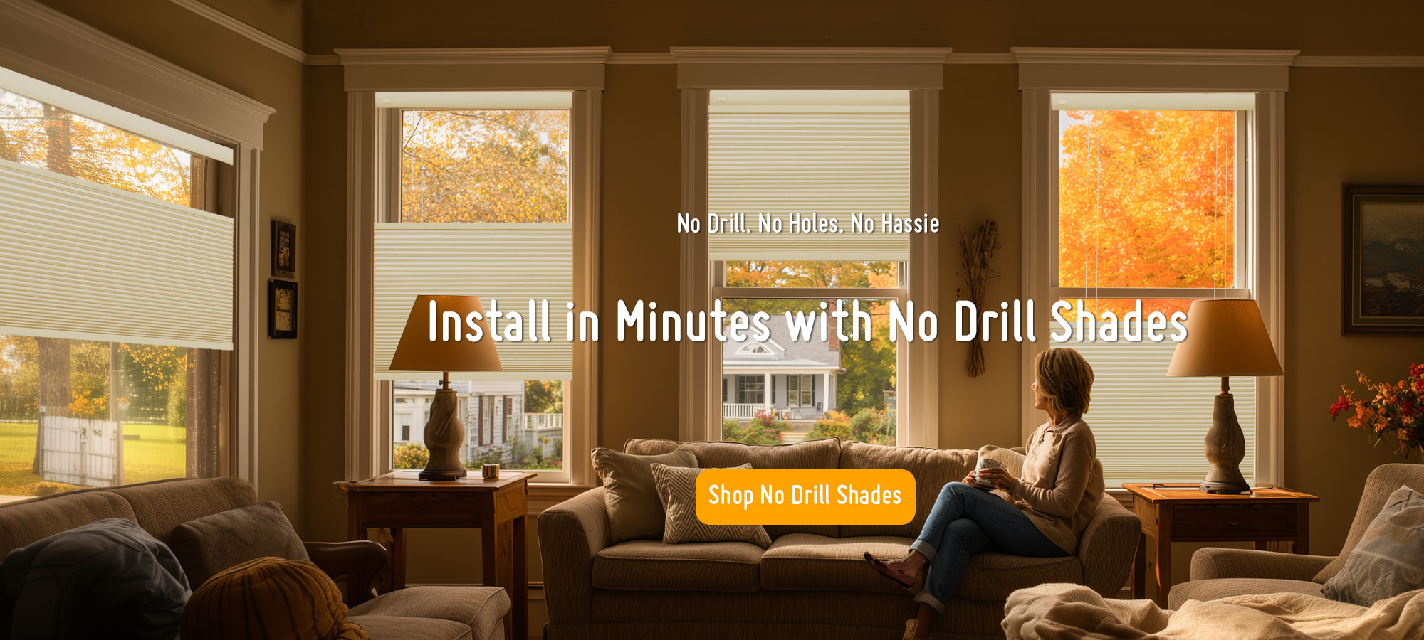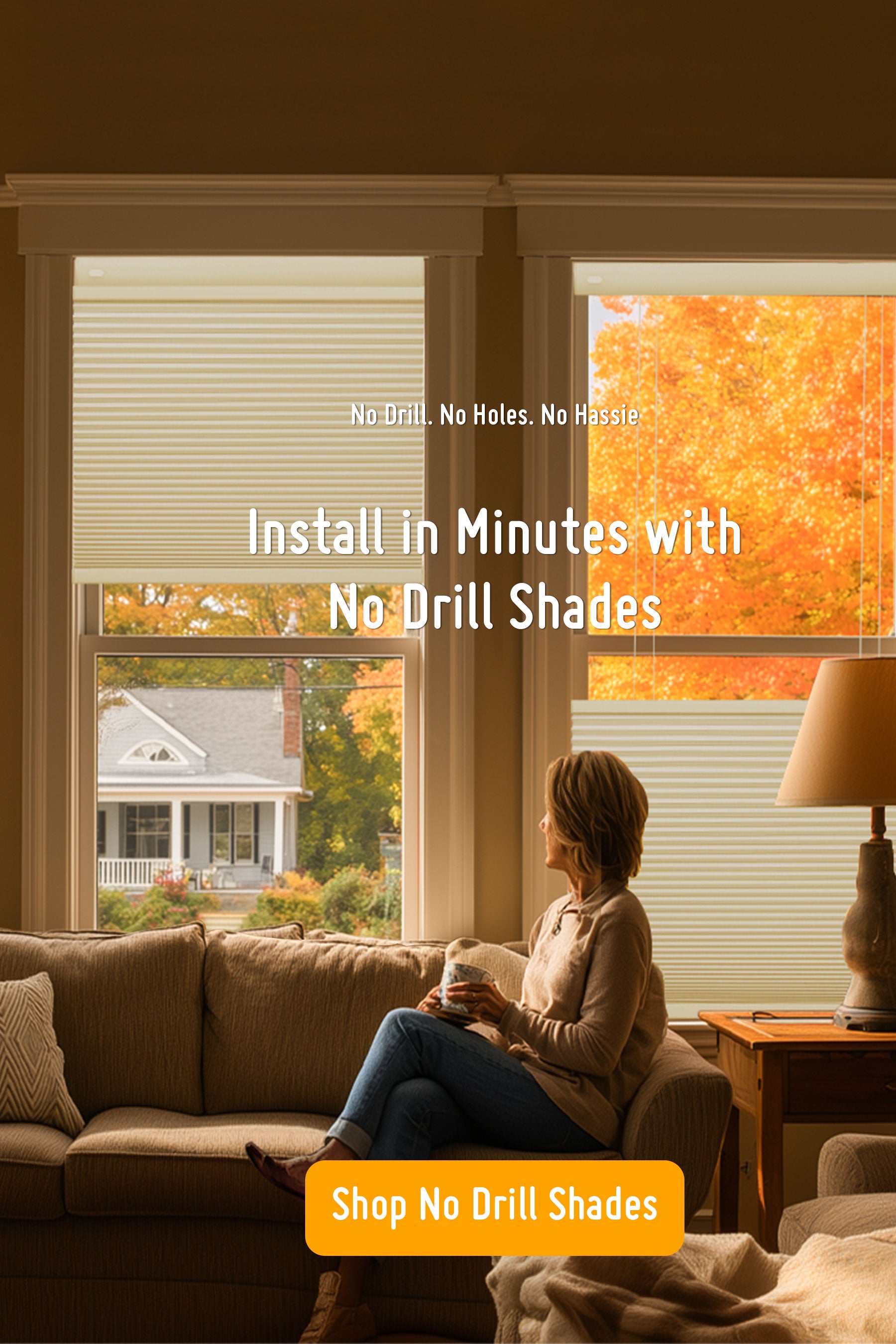 No drill blinds do not need any tools for installation. there is no need to get a drill and screwdrivers. Also not needing to drill holes will produce no dust and dirt. But the most important saving will be on your time and nerves.