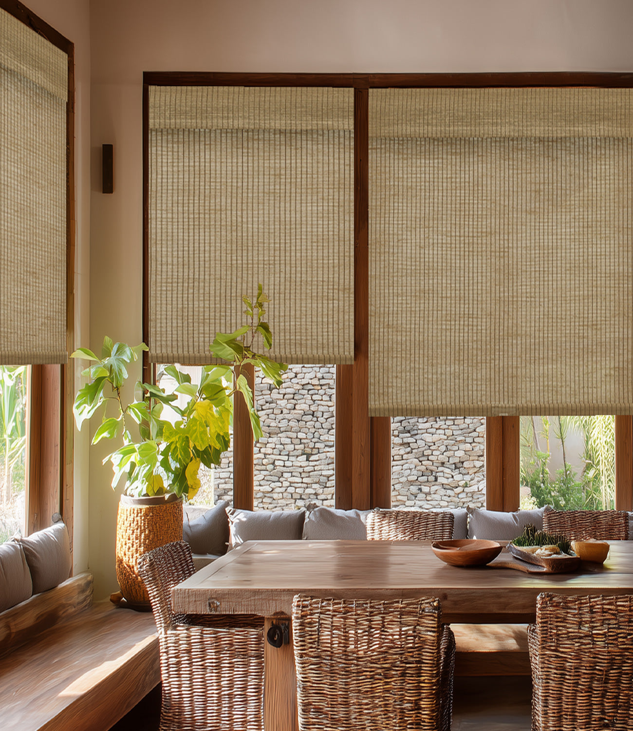 Add natural charm to your space with eco-friendly Bamboo Shades. Offering privacy, light control, and a warm, organic look, they’re perfect for any room, blending style and sustainability effortlessly.