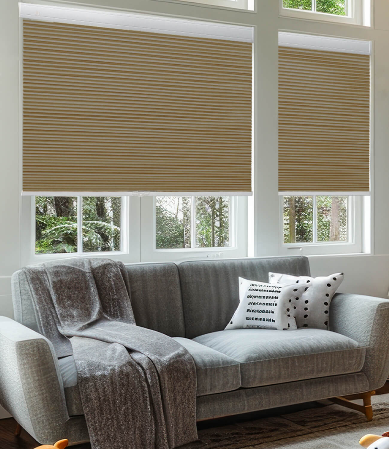 These window coverings are commonly made of honeycomb-shaped cells, these cells trap air, creating a layer of insulation. This helps keep your home warmer in winter and cooler in summer by reducing heat loss and gain through windows. They improve energy efficiency and can lower heating and cooling bills.