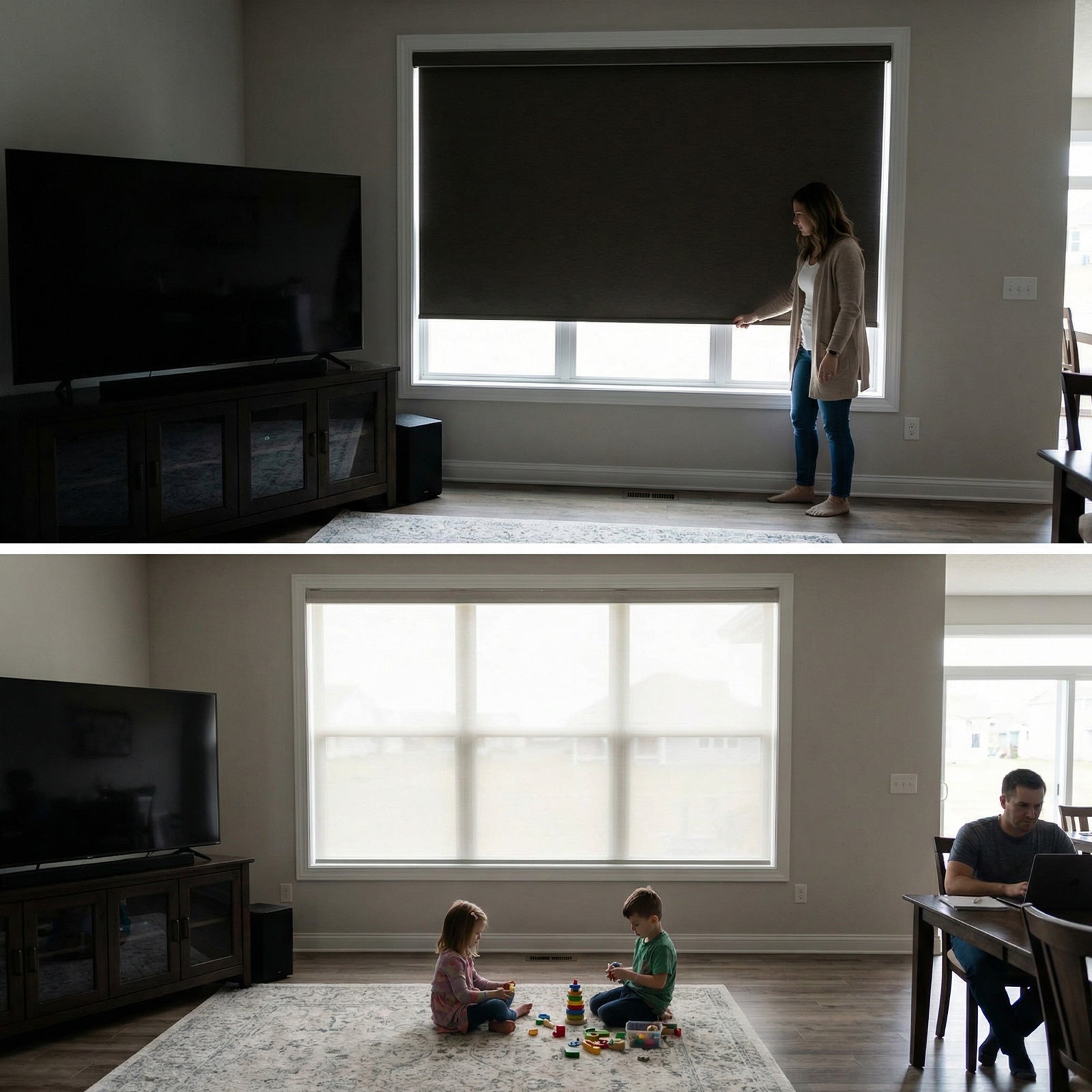Spaces that serve different functions throughout the day benefit from dual layer options. You adapt the room quickly from a bright play area to a private media space without changing anything permanently.