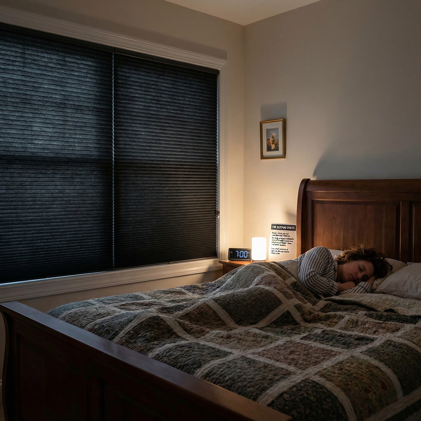 Rooms where you rest need blackout materials. Your body produces melatonin more effectively in darkness, which means deeper sleep and better recovery. Even small amounts of light can disrupt natural sleep cycles.