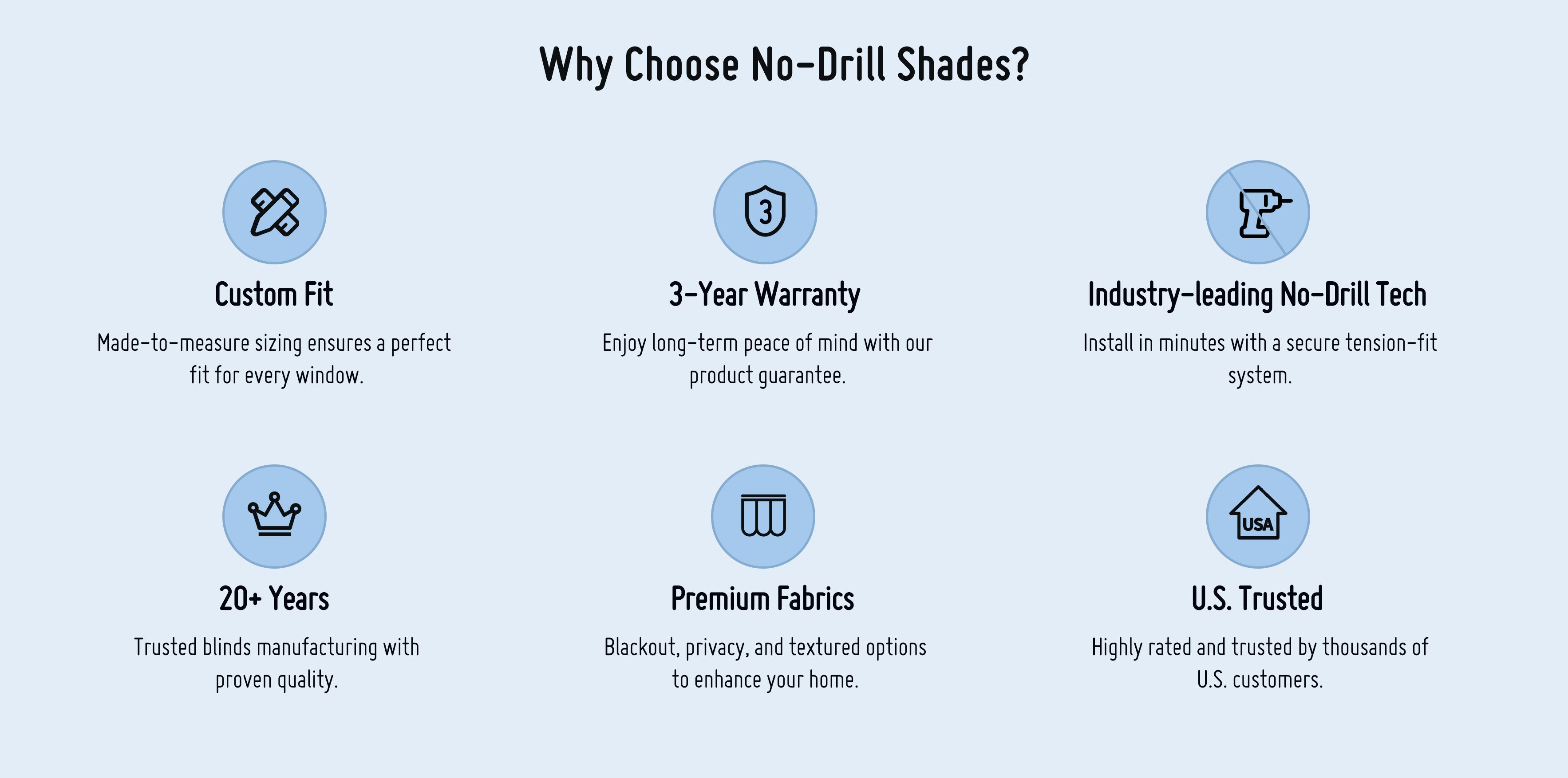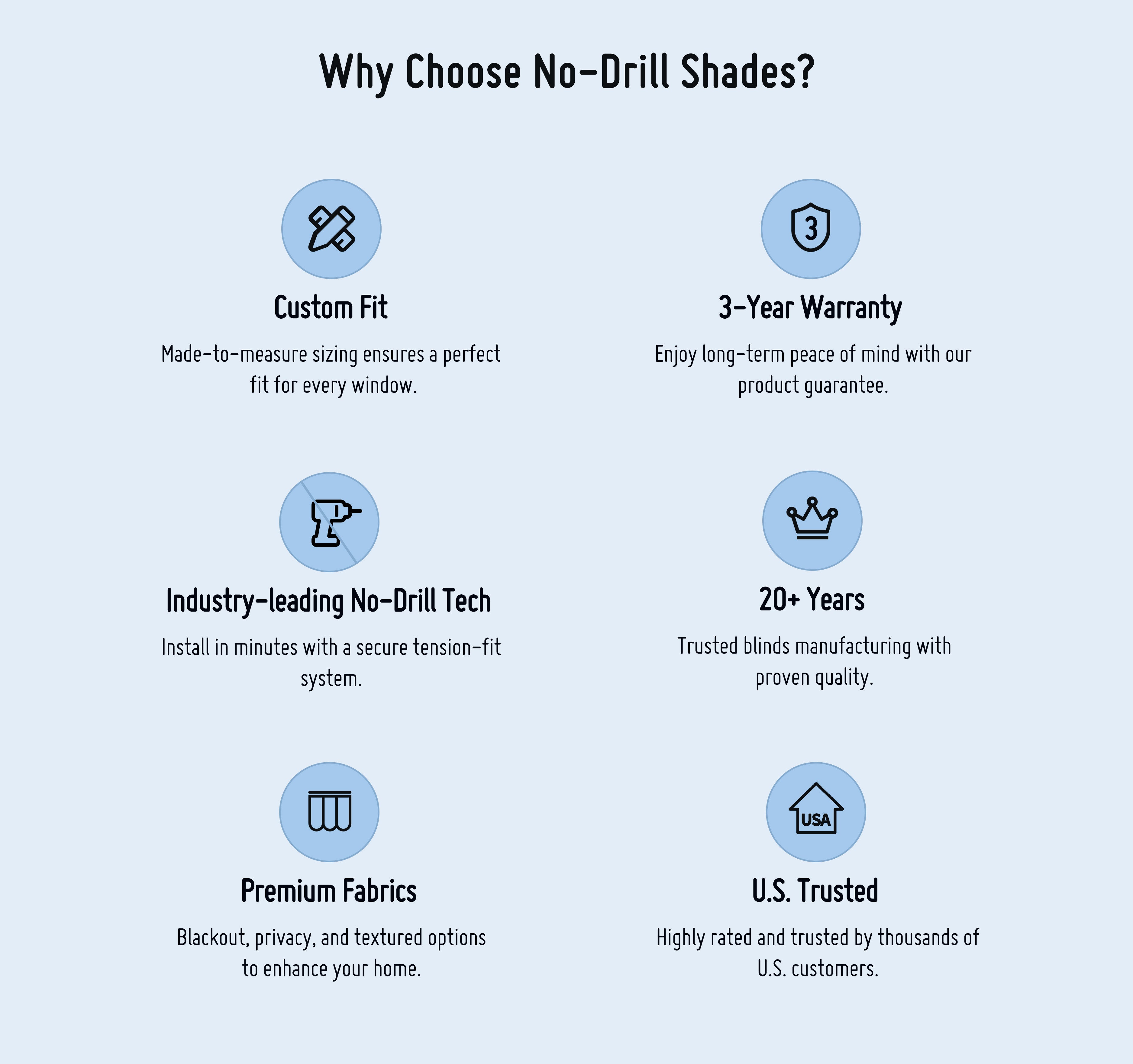 No-Drill Shades — Install in Minutes, No Damage, No Tools