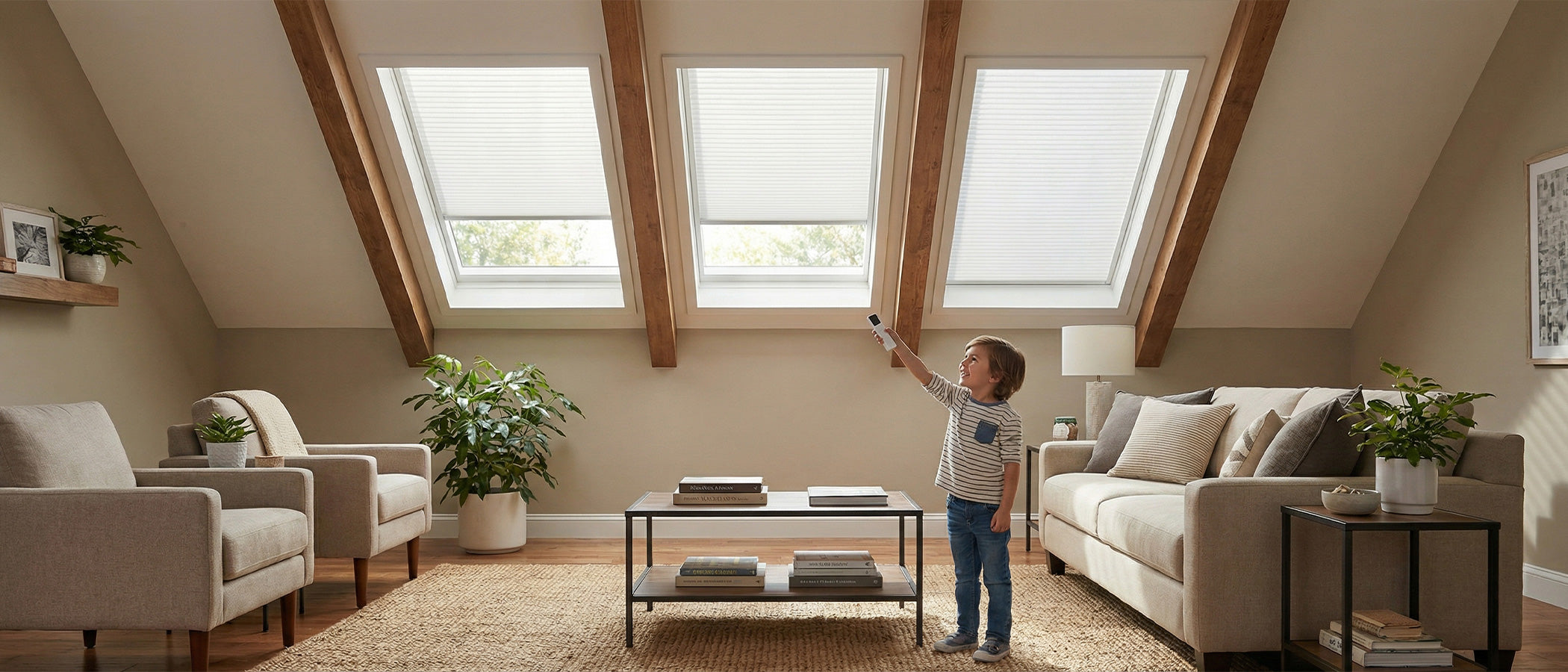 Motorized shades offer easier use, better comfort, and true convenience for skylights.
