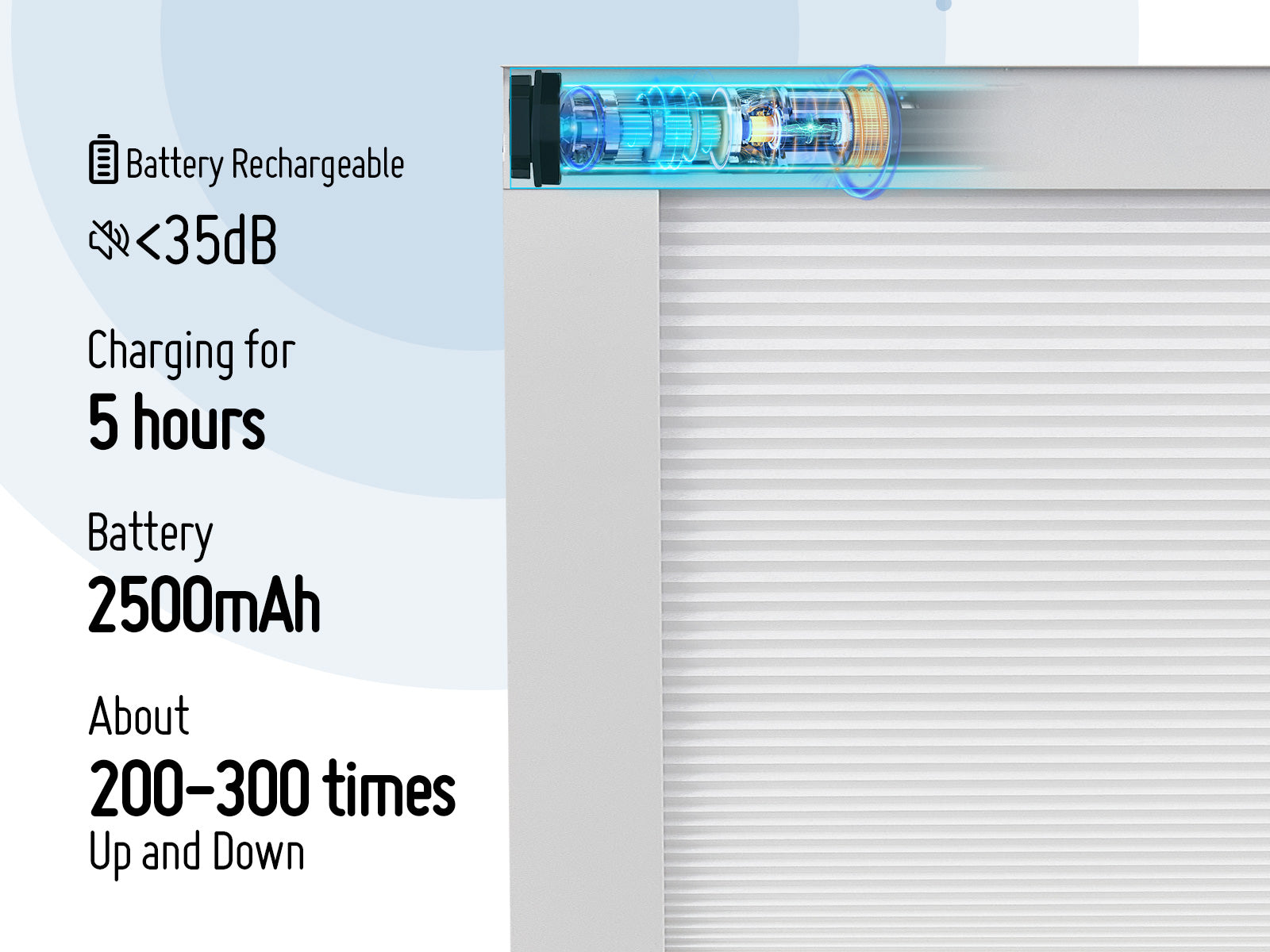 Motorized system ensures a clean, safe look with no hazardous cords.